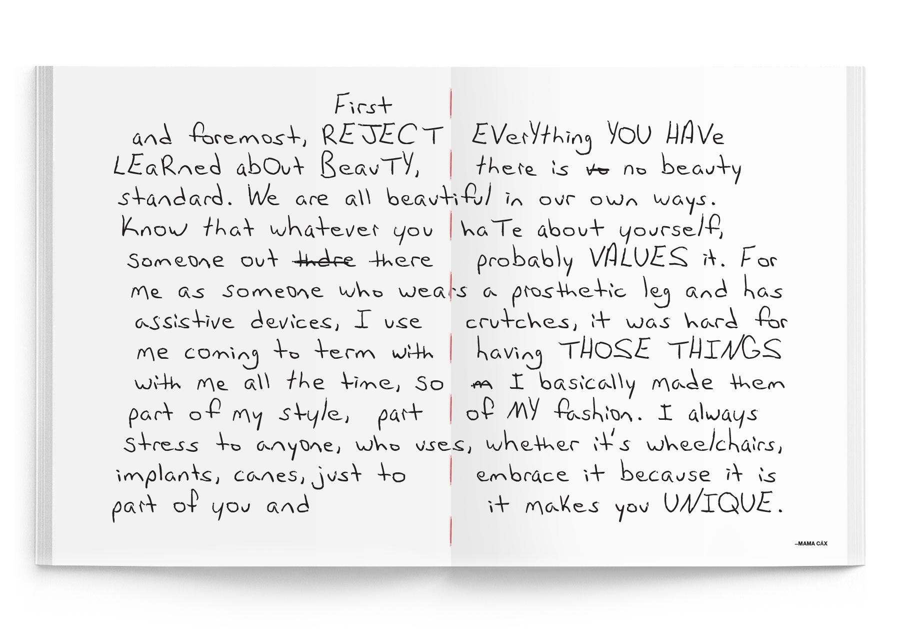 After each portrait session we spoke with our subjects about the idea of beauty and asked them to reflect other own personal stories, experiences and thoughts by putting pen to paper, in hopes of inspiring all of us to look deeper both at their portraits, and at ourselves, in our own quiet for self-acceptance and the journey towards realizing our best selves.